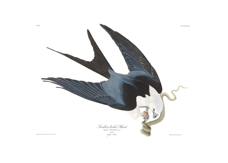Of course, with all these snakes eating birds, Audbon had to include the reverse: a bird eating a snake, which you can see in the print below.