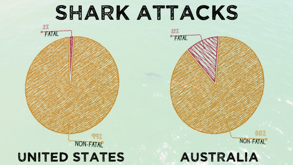 One possible reason Australia leads in fatal attacks is because of the surfing culture there. Check out these stats. 2.5 million Aussies are surfers. That’s nearly 10% of the country’s population. By comparison, roughly 3.5 million Americans are surfers, which is little over 1% of America’s population. That parallels the fatal attacks in each country fairly well.