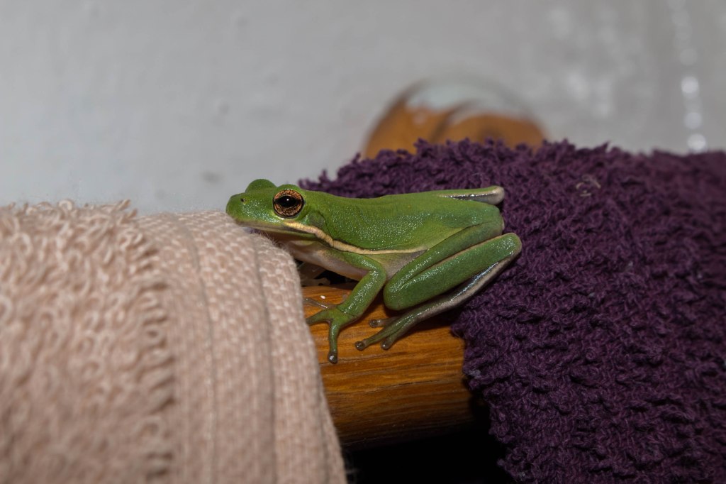 Even my wife had her own treefrog encounter when one randomly showed up inside our home! Her video is at the end of the video I posted above. Her reactions still makes me laugh.