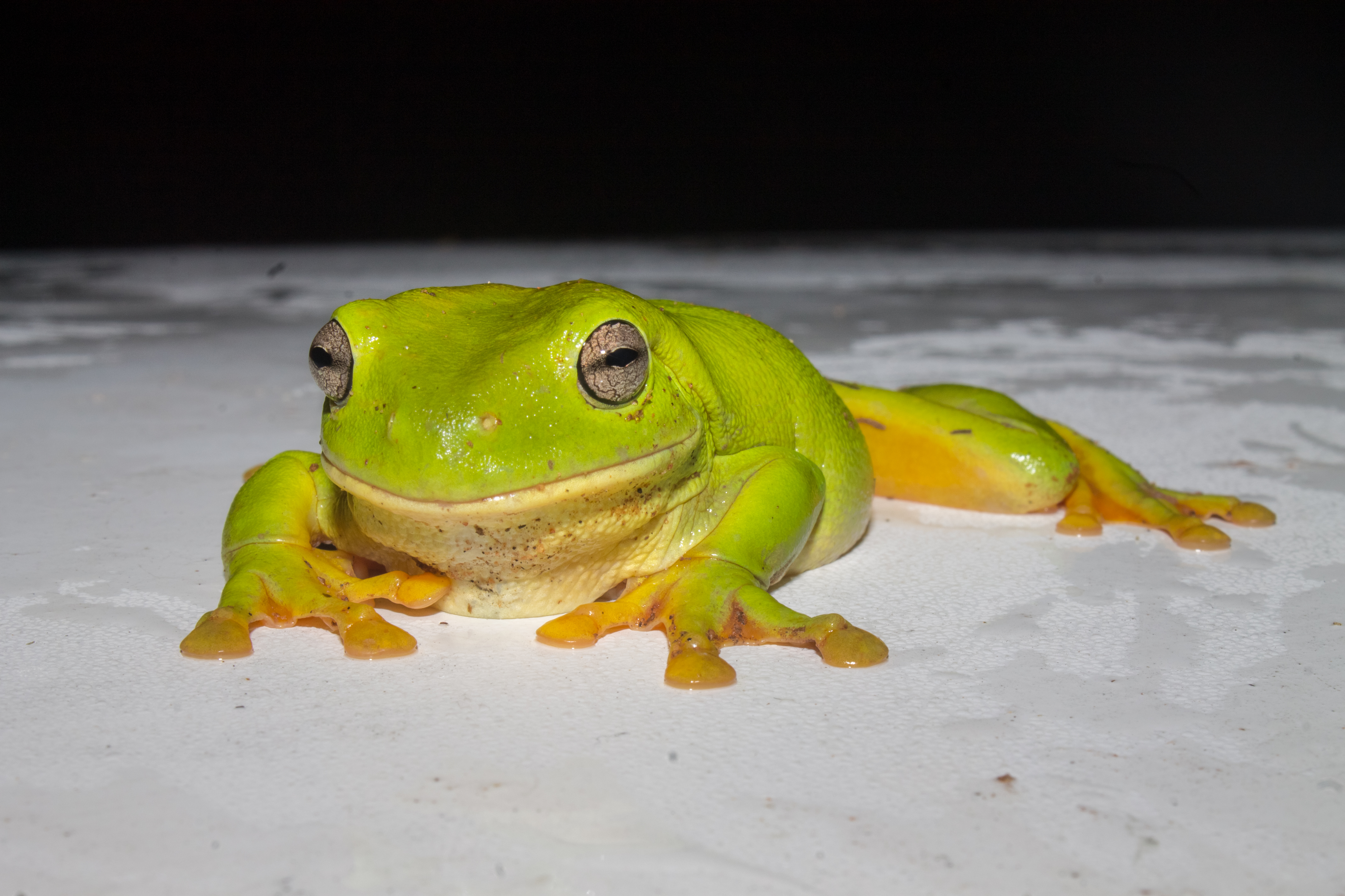 This lone, big green frog is the Australian green treefrog, who had basically declared itself emperor by claiming the roof of my car.