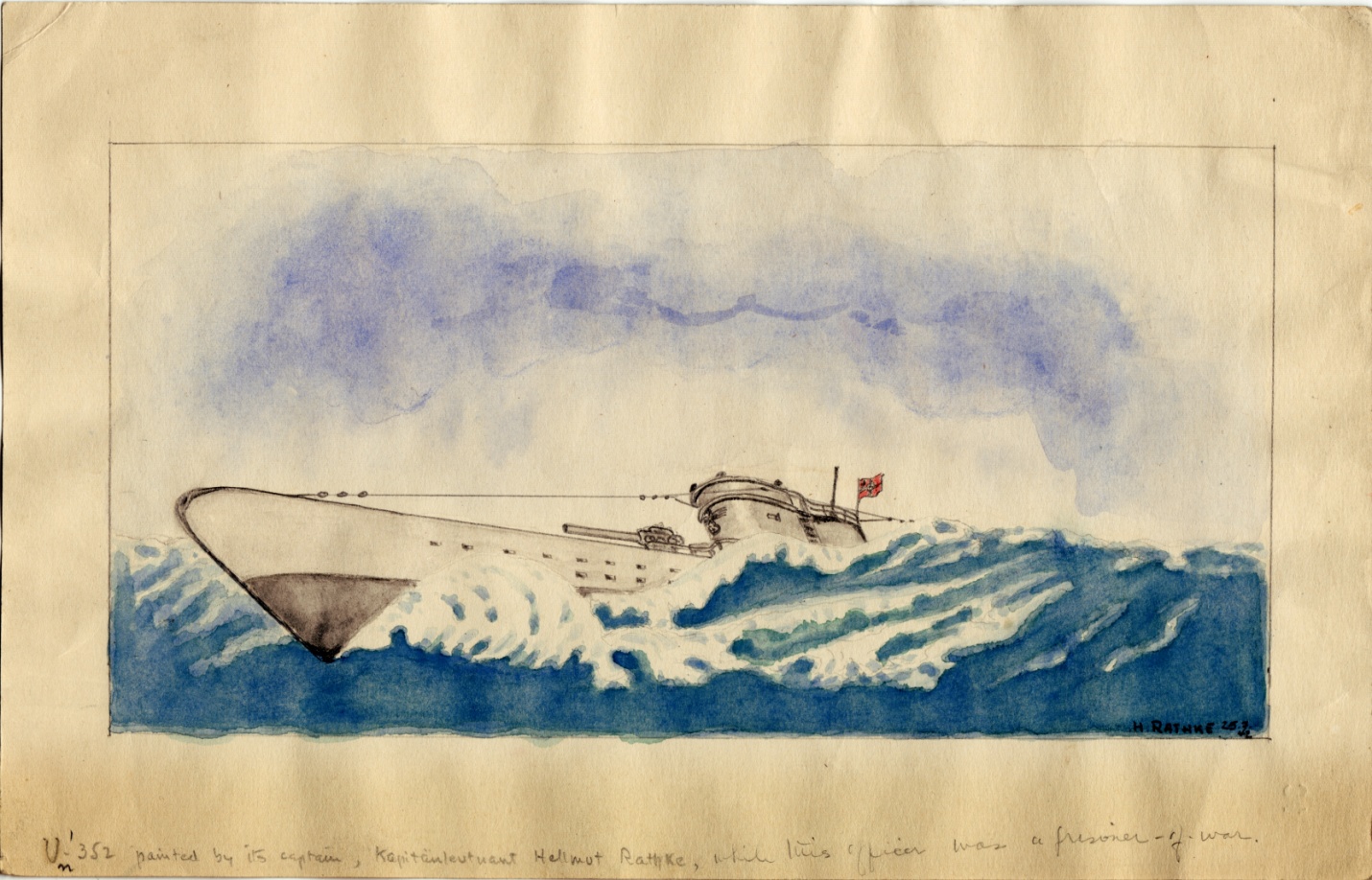 Minutes later, the U-boat emerges from the boiling sea at a 45 degree angle. Her bow is at the surface, and her stern is somewhere in the depths below. Little did the Coast Guard men know that this U-boat was U-352.