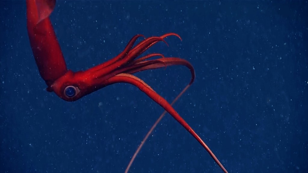 Take a look at this one filmed in 2019 in the Gulf of Mexico. I’m not gonna lie, this footage makes me shudder a bit because it revealed that giant squid are active predators that primarily hunt by sight. Can you imagine being alone in the deep sea, and then, suddenly, a huge pair of tentacles grabs you. NOPE!