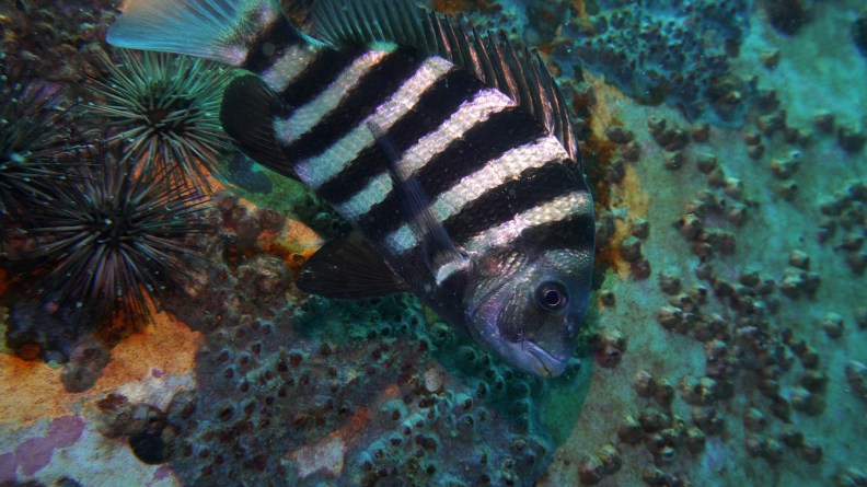 In my own experience, I’ve seen these fish hanging around wrecks off North Carolina. I even have some footage here of a sheepshead munching on some barnacles. You can watch it in my YouTube video on this same subject.