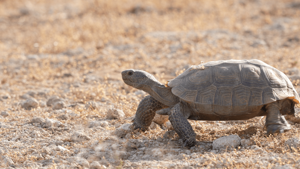 Out of the water, land lubbering turtles have a different problem. In the deserts of North America, tortoises face extreme conditions day and night. Some species, such as the desert tortoise, spend most of their time in burrows and attain water from eating grasses, wildflowers, and cacti. Remarkably, they have large urinary bladders and can store 40% of their body weight in water, urea, uric acid, and nitrogenous wastes. This allows them to survive a year or more without access to water.