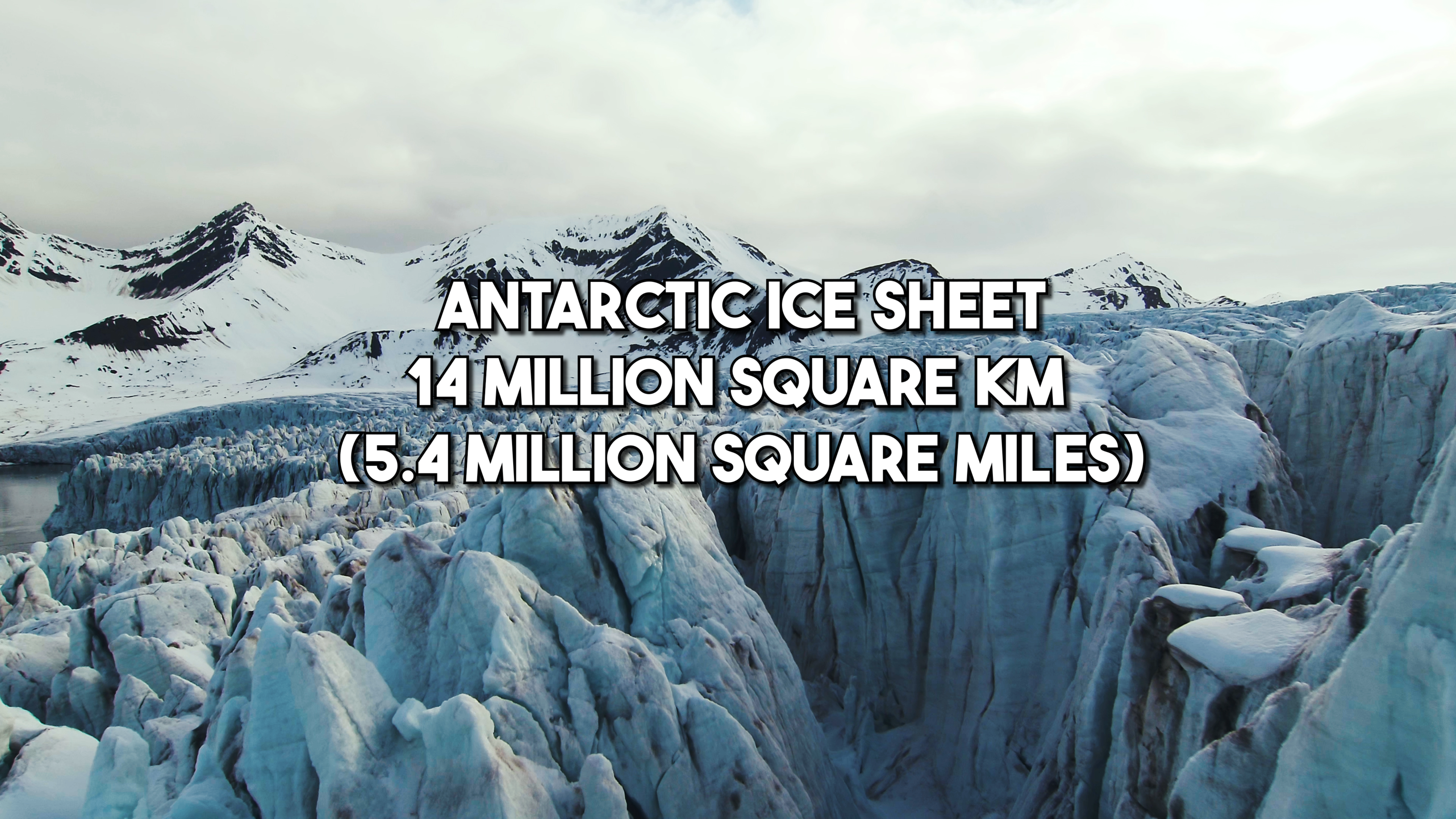 99% of Earth’s freshwater ice and 68% of Earth’s total freshwater is stored in the Antarctic and Greenland Ice Sheets. Antarctica alone harbors 90% of the world’s ice and 60% of the world’s total freshwater. That shouldn’t be a surprise, though, because the Antarctic Ice Sheet is nearly 14 million square kilometers (5.4 million square miles), which is roughly the combined size of the United States and Mexico.