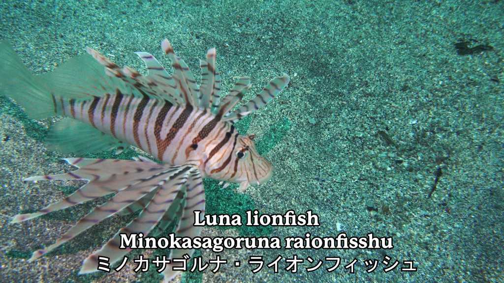 This loner has somehow managed to find an anemone in the middle of nowhere. Outside the tiny fish’s encampment, two hungry predators are hoping to catch an easy snack. On one side is a luna lionfish and, on the other, a kidako moray. Both the lionfish and the moray are a common sight in the Izu Peninsula, but compared to the other creatures that live here, they’re pretty regular.