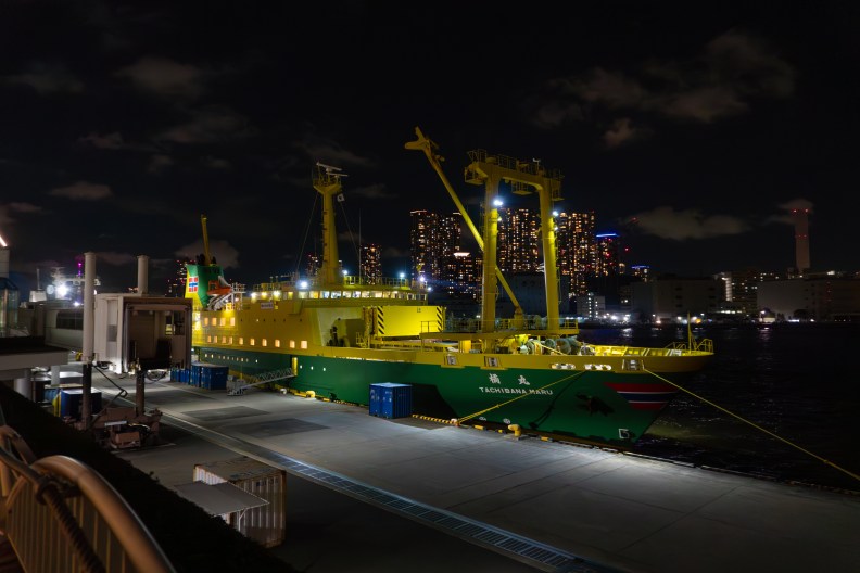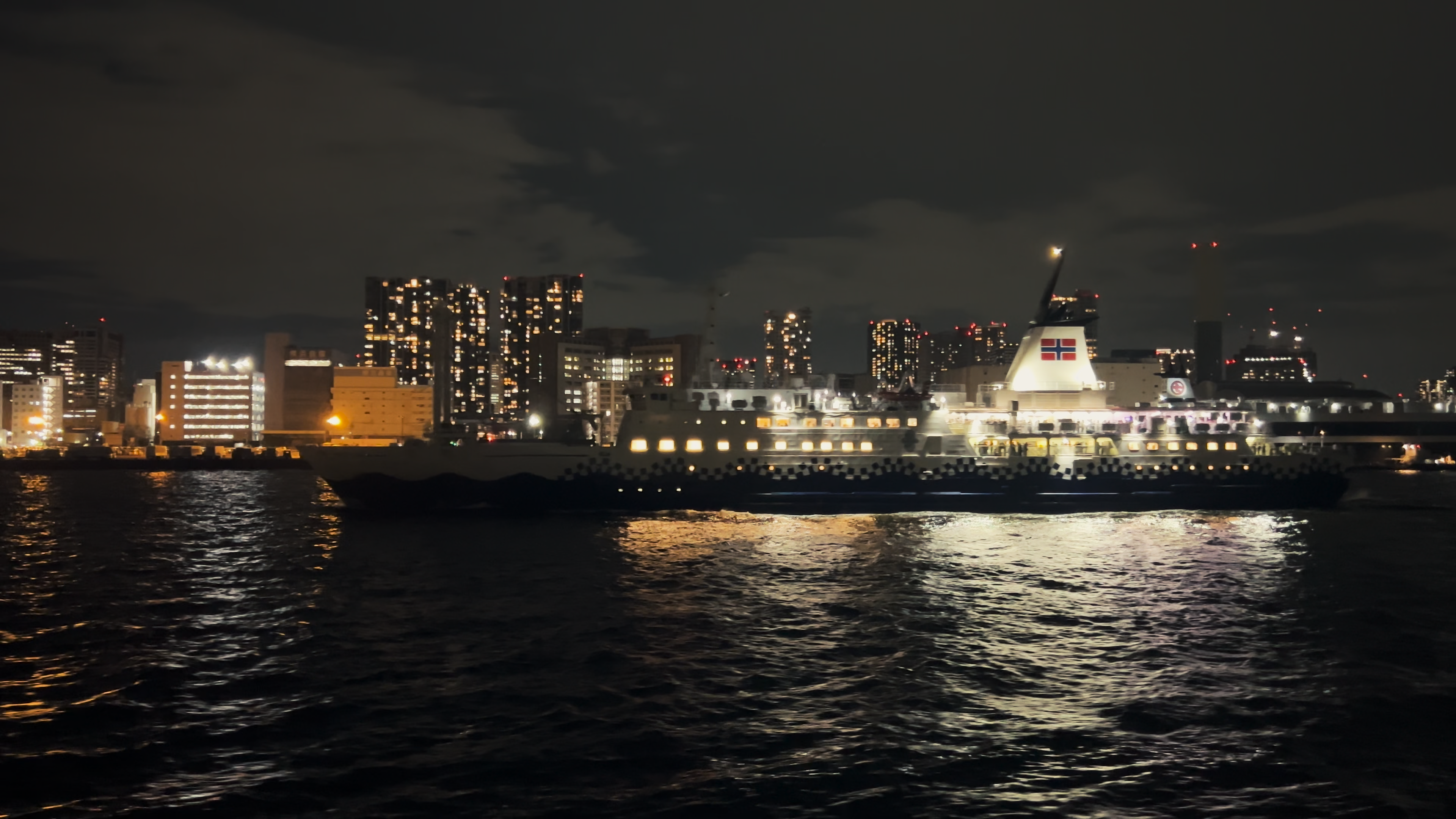 Several hours later, we returned to Tokyo. We got another glimpse of the Salvia Maru on her way out to sea. Not long after, we arrived at Takeshiba Ship Terminal and disembarked around 7:40 pm.