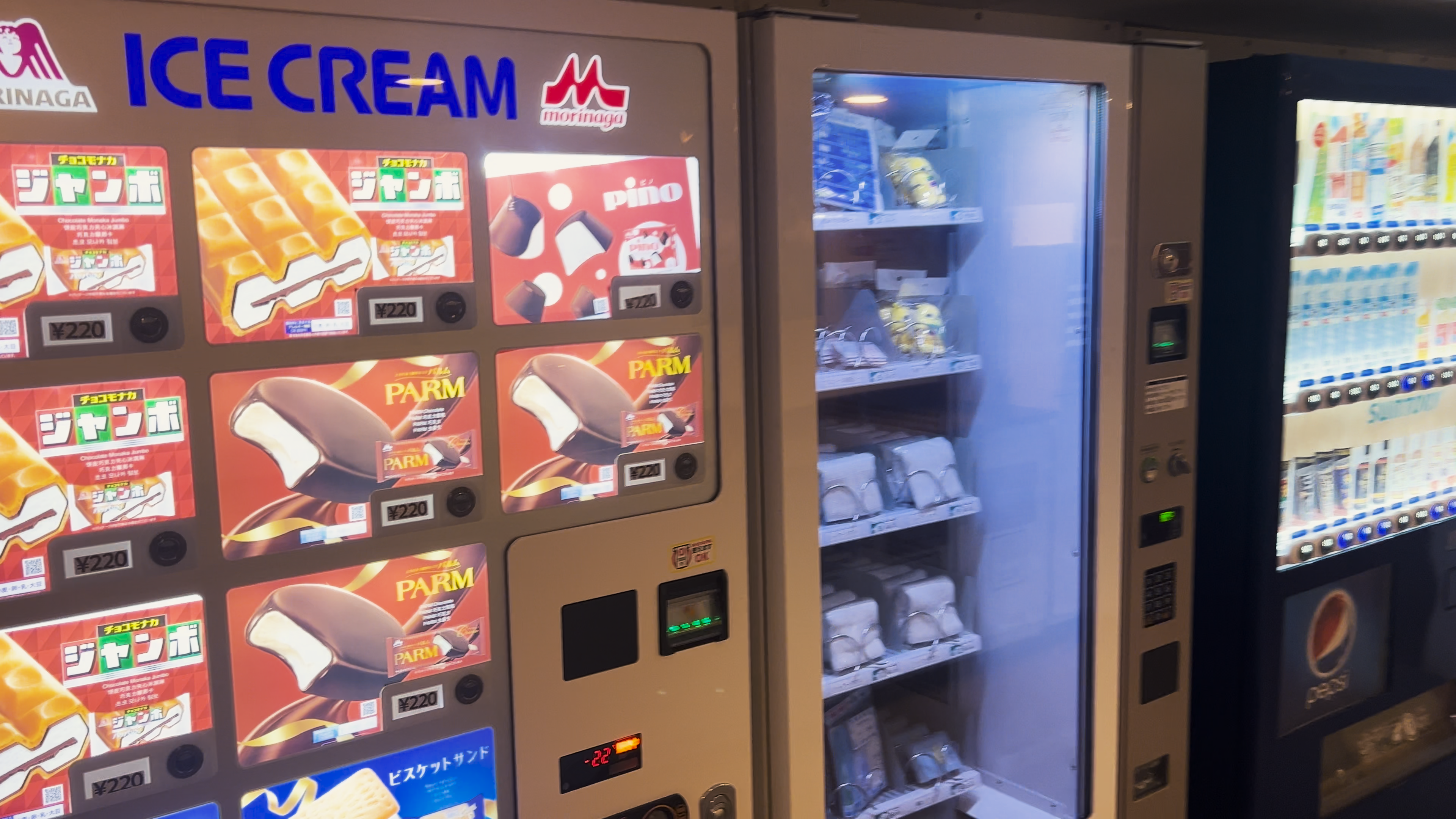 Just like the rest of Japan, the ship had plenty of vending machines. They offered ramen, drinks, ice cream, and even cakes! There was also a vending machine that had towels and little ferry mascot plushies.