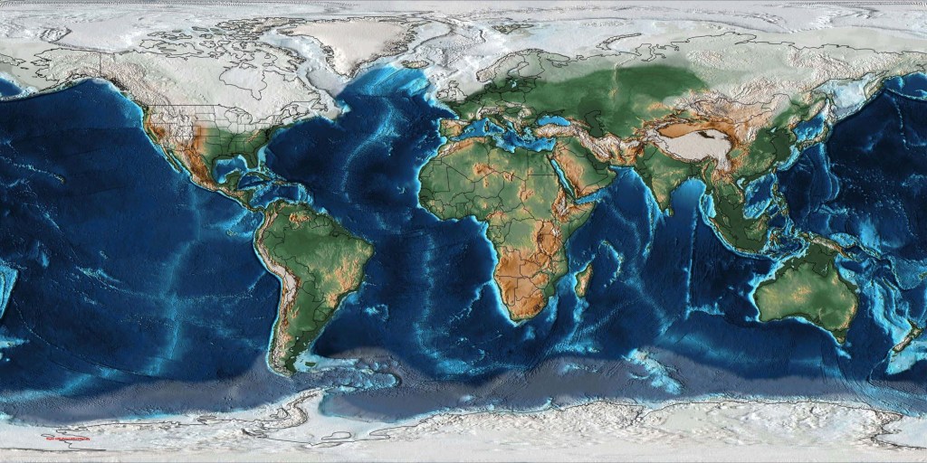 Skip to the Ice Age. In this era, the Earth was constantly cooling and warming. As Earth cooled, the world’s waters became trapped in glaciers, and sea levels dropped so low that today’s shallow coastal waters were dry land. In some parts of the Gulf, the shoreline extended over 200 kilometers (about 120 miles) further than present day beaches.