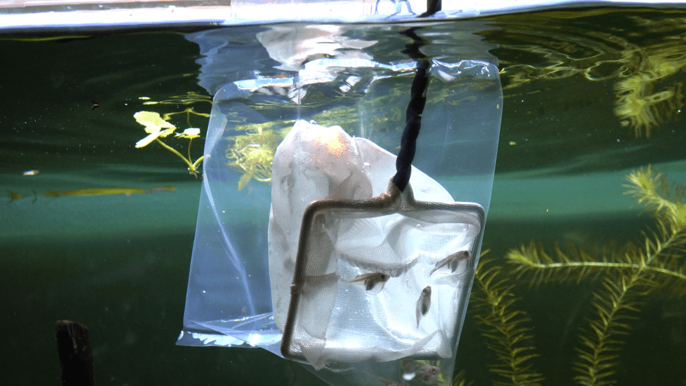 When you add the fish, do NOT dump them out of their bag. You do NOT want the pet store bag water getting into your tank because it can mess up the water quality. Instead, use a net to scoop the fish out of the bags and put them in the tank.