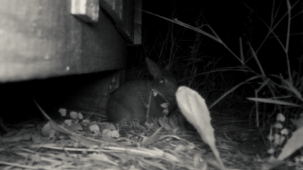 Once the coast was clear, a lone bunny rocketed back to the shelter of the shed. After this night, we don’t know what happened the bunnies because we no longer saw them in our yard or on the trail cam. Let’s hope and pray that most of them beat the odds and survived!