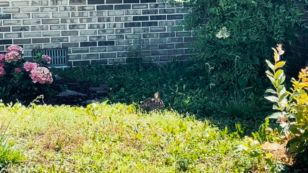 As the days passed, the bunnies became more independent, and some of them started wandering away from the burrow. I found one along the side of our house, and my wife found a few setting up camp under our shed. At this point, I’m not sure if their mom was still feeding them, but they were definitely gorging themselves on grass and weeds.