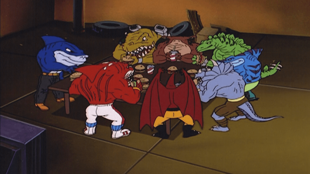 Interestingly, the Street Sharks hate pizza, and they prefer eating burgers and shakes. I can only guess this was to make fun of the Ninja Turtles because who the heck hates pizza?